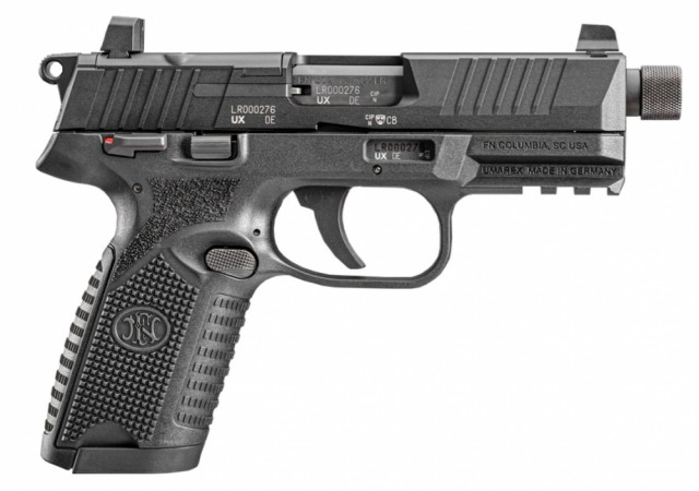 FN 502 T BLK Tactical-modellen er gjenget (1/2"x28) for montering av lyddemper og er klargjort for optikk (Optics Ready). Leveres med ulike montasjeplater for rødpunktsikte, samt to magasiner – ett med kapasitet for 10 skudd og ett for 15 skudd. Pistolen er kjent for sitt presise og behagelige avtrekk, og er godt egnet både for høyre- og venstrehendte skyttere.