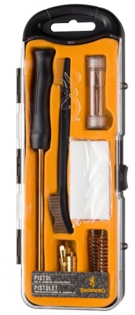 Et selvstendig sett for detaljert rengjøring av håndvåpen i vanlige kalibre: .22, .38 / 9mm og .45.
