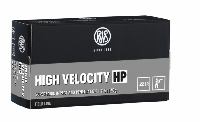 RWS High Velocity HP er en høyhastighetspatron som ligger ca 80 ms over standardpatroner i hastighet. Kobberbelagt kule med hulspiss. RWS anbefaler denne til kombinasjonsvåpen med innstikkspiper. RWS produserer høykvalitets ammunisjon og komponenter til hele verden. Mange av verdens beste skyttere bruker RWS.