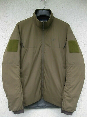 Significantly warmer and more protective than a fleece, this insulated jacket is breathable enough to be used as a super-warm mid layer under a heavy shell on frigid days, and contains enough insulation to be worn on its own while in camp. An extra thick layer (100g/m) of synthetic Coreloft insulates the torso but packs small, and a light tricot underarm panel enhances breathability. The cut is roomy enough to accommodate light armour underneath, yet is compressible enough to stow in its own hand pocket. When deciding on the correcting sizing for this product, choose your regular clothing size. This jacket is already oversized and is designed to fit over light body armour. It is not necessary to select a larger size than normal in order to accomodate body armour underneath.