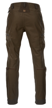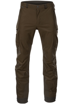 Mountain Hunter Pro-buksen er i likhet med Mountain Hunter Pro-jakken laget av et børstet, lydsvakt trikotmateriale og utstyrt med en trelags GORE-TEX®-membran som gjør den maksimalt værbestandig. I tillegg er den behandlet med vann- og smussavvisende DWR (Durable Water Repellent). Buksen har robuste forsterkninger av Cordura®-stoff ved anklene og ventilasjonsglidelåser med innsydd mesh øverst på baksiden av begge lårene. Mountain Hunter Pro-buksen har skråstilte forlommer med glidelås og to store cargolommer. I høyre cargolomme er det en patronholder til fire riflepatroner. Buksen har videre lukking med to knapper og glidelås, reguleringsreimer bak knærne og ved anklene og en D-ring til å henge forskjellig utstyr i på venstre side bak.