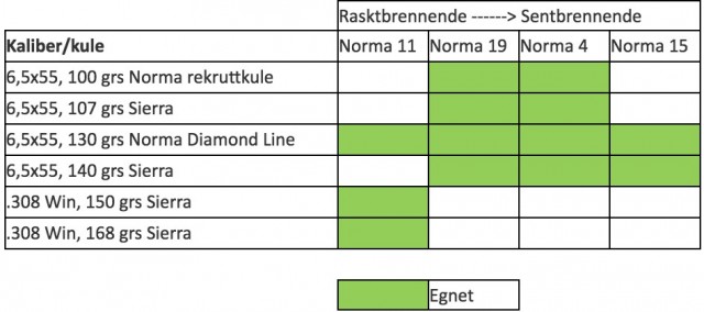 Norma 19 er det mest fleksible av skytterlagskruttene i kaliber 6,5. Kan brukes fra lette rekruttkuler til tunge kuler i høy hastighet.