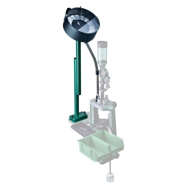 Designed to fit on most 7/8-inch-14 threaded progressive presses, the RCBS® Pistol Bullet Feeder Kit features a four-country universal 110-240 VAC operated collator that orients the bullets to drop into the feed mechanism. The hopper holds approximately 200 bullets. The kit contains adapters to load 9mm/.38 Special/.357 Mag., 10mm/.40 and .45 ACP jacketed/FMJ pistol bullets, and it increases load rate 50 percent. Patent pending. Not for use with lead bullets—use jacketed or FMJ bullets only.