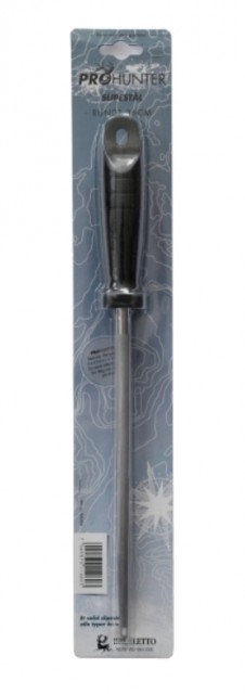 Prohunter slipestål med plastskaft. Vi anbefaler å bruke slipestålet for å vedlikeholde knivene. Hvis du effektivt skal vedlikeholde knivene dine før bruk, så er strykestål et godt alternativ. Stryk kniven meget langsomt i en vinkel på 15-20 grader. Det er viktig at du gjør det langsomt og at du stryker «eggen» i ett og samme strøk. Du bør gjøre dette 4-5 ganger, på hver side av knivbladet.