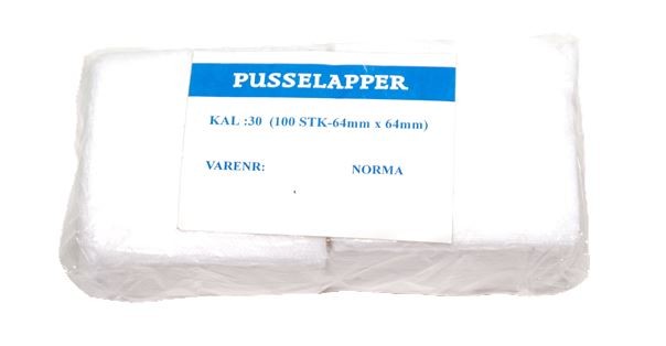 Vi har pusselapper i forskjellige størrelser som passer hver sine kaliber. Pusselappene kan også klippes til og tilpasses sånn som brukeren selv ønsker. Lappene kan brukes til både innvendig og utvendig puss av våpen og annet utstyr. Og kan enkelt brukes ilag med pusseøye, stryholder eller jag.